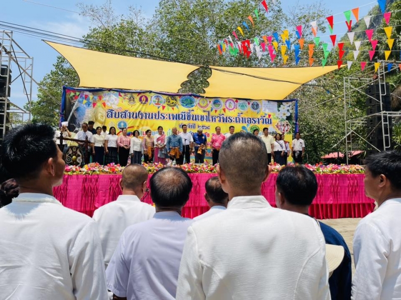 11 เมษายน 2568 เวลา 11.00 น. ณ วัดถ้ำเอราวัณ บ้านผาอินทร์แปลง หมู่ที่ 3 ตำบลวังทอง อำเภอนาวัง นายสุรศักดิ์ อักษรกุล ผู้ว่าราชการจังหวัดหนองบัวลำภู เป็นประธานเปิดงานประเพณีขึ้นเขาไหว้พระถ้ำเอราวัณ ประจำปี 2568 โดยมี นายปิยะพงษ์ บุญส่ง นายอำเภอนาวัง เป็นผู้กล่่าวต้อนรับ มี หัวหน้าส่วนราชการระดับจังหวัด นายกองค์การบริหารส่วนจังหวัดหนองบัวลำภู นายอำเภอเมืองหนองบัวลำภู ผู้บริหารองค์การบริหารส่วนตำบลวังทอง องค์การบริหารส่วนท้องถิ่นเขตพื้นที่อำเภอนาวัง ภาคเอกชน ประชาชนอำเภอนาวัง และสื่อมวลชน ร่วมพิธีเปิดฯ ซึ่งอำเภอนาวัง ร่วมกับ องค์การบริหารส่วนตำบลวังทอง และองค์กรปกครองส่วนท้องถิ่นทุกแห่งในเขตอำเภอนาวัง ดำเนินการจัดงานประเพณีขึ้นเขาไหว้พระถ้ำเอราวัณ ประจำปี พ.ศ. 2568 เพื่อเป็นการส่งเสริม อนุรักษ์ สืบสานศิลปะวัฒนธรรมประเพณีอันดีงามของท้องถิ่นให้คงสืบอยู่ไป